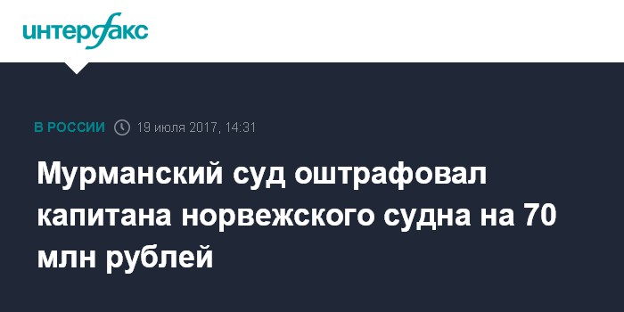 Мурманский суд оштрафовал капитана норвежского судна на 70 млн рублей