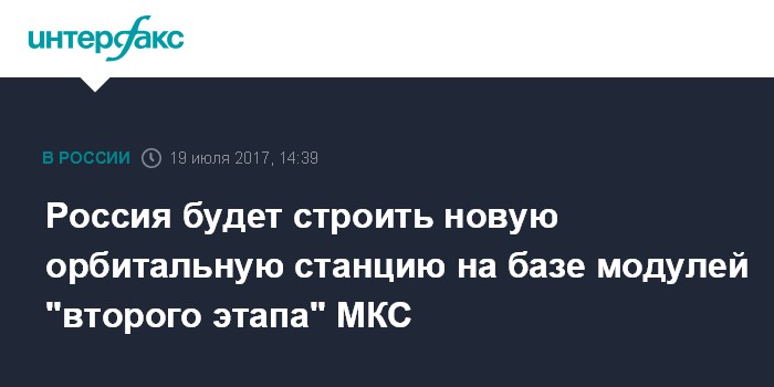 Россия будет строить новую орбитальную станцию на базе модулей "второго этапа" МКС