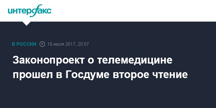 Москва. 19 июля. INTERFAX.RU - Госдума в среду приняла во втором чтении правительственный законопроект о телемедицине, который предусматривает возможность выдачи в электронной форме рецептов на лекарства, в том числе на препараты, содержащие наркотические средства.