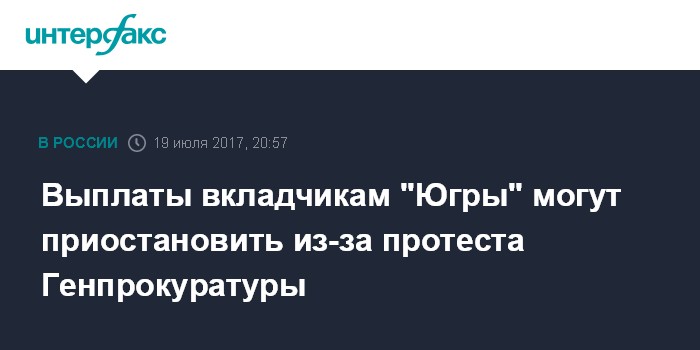 Выплаты вкладчикам "Югры" могут приостановить из-за протеста Генпрокуратуры