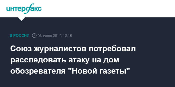 Союз журналистов потребовал расследовать атаку на дом обозревателя "Новой газеты"