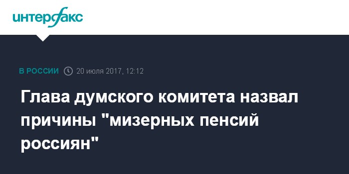 Глава думского комитета назвал причины "мизерных пенсий россиян"