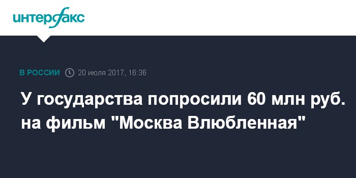 У государства попросили 60 млн руб. на фильм "Москва Влюбленная"