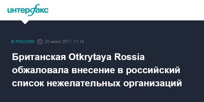 Москва. 20 июля. INTERFAX.RU - Британская "Открытая Россия" (Otkrytaya Rossia) обжаловала действия Генпрокуратуры и Минюста РФ, внесших его в список нежелательных организаций, сообщили "Интерфаксу" в российском сетевом движении "Открытая Россия".