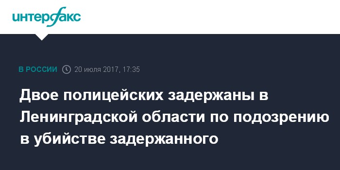 Москва. 20 июля. INTERFAX.RU - Двое сотрудников полиции задержаны в Ленинградской области по подозрению в избиении задержанного до смерти. ОБ этом сообщила пресс-служба регионального управления СКР в четверг.