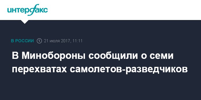 Москва. 21 июля. INTERFAX.RU - Российские истребители семь раз за прошедшую неделю вылетали на перехват разведывательных самолнтов, сообщили в Минобороны РФ.