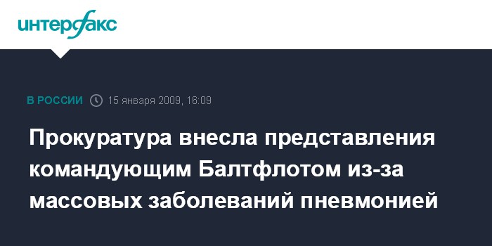 Москва. 15 января. INTERFAX.RU - Причиной массовых заболеваний пневмонией военнослужащих по призыву в частях Балтийского флота и Приволжско-Уральского военного округа (ПУрВО) стало ненадлежащее исполнение должностными лицами своих служебных обязанностей, заявляют в Главной военной прокуратуре.
