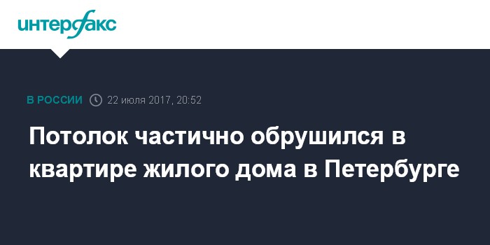 Потолок частично обрушился в квартире жилого дома в Петербурге