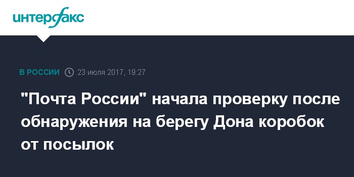 Москва. 23 июля. INTERFAX.RU - Сотрудники почтовой безопасности УФПС Ростовской области проводят внутреннее расследование после найденных на берегу Дона пустых коробок от посылок, сообщили агентству "Интерфакс" в пресс-службе Ростовского филиала Почты России.