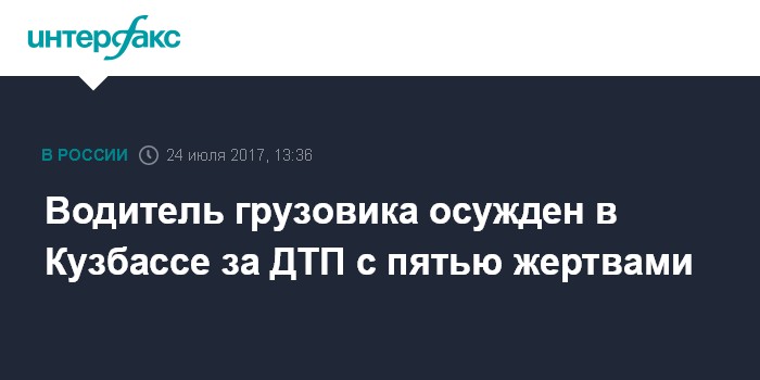 Москва. 24 июля. INTERFAX.RU - Заводский районный суд города Кемерово вынес приговор водителю грузовика, по вине которого погибли пять человек, в том числе две маленькие девочки. Об этом сообщает пресс-служба прокуратуры Кемеровской области в понедельник.