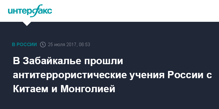 Москва. 25 июля. INTERFAX.RU - Задержание группы международных террористов отработали пограничники России, Китая и Монголии в ходе трехстороннего антитеррористического учения "Укрепление границы - 2017", сообщает пресс-служба Пограничного управления ФСБ России по Забайкальскому краю.
