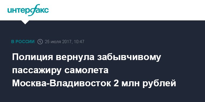Полиция вернула забывчивому пассажиру самолета Москва-Владивосток 2 млн рублей