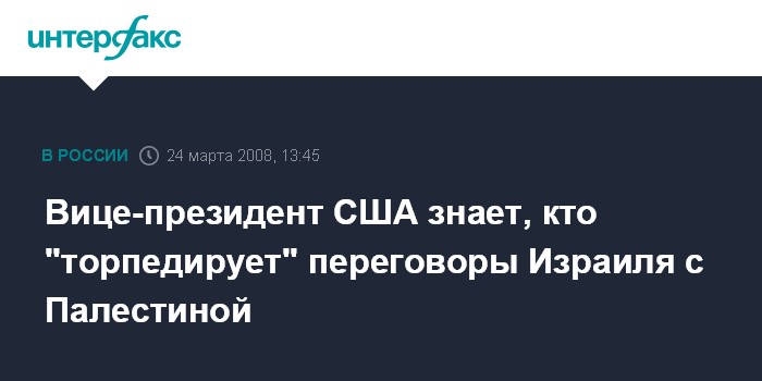 Вице-президент США знает, кто "торпедирует" переговоры Израиля с Палестиной