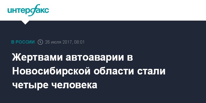 Москва. 26 июля. INTERFAX.RU - Четыре человека, в том числе четырехлетний ребенок, погибли в результате столкновения легкового автомобиля Toyota с грузовым автомобилем Volvo в среду в Новосибирской области, сообщает пресс-служба ГУ МВД России по региону.