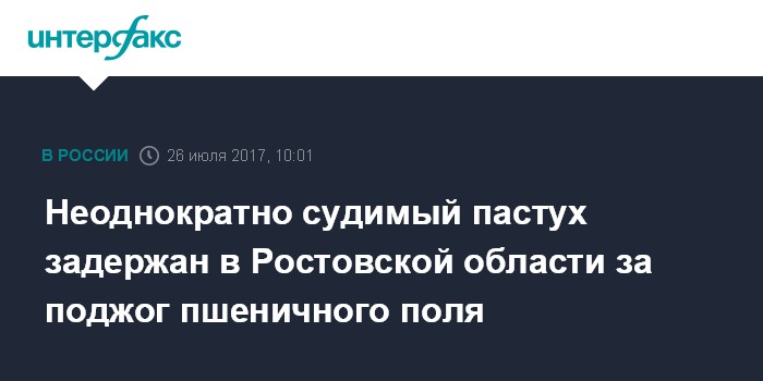 Неоднократно судимый пастух задержан в Ростовской области за поджог пшеничного поля