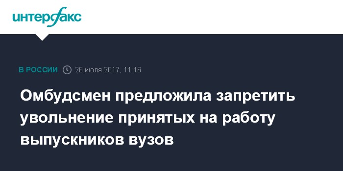 Омбудсмен предложила запретить увольнение принятых на работу выпускников вузов