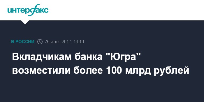 Вкладчикам банка "Югра" возместили более 100 млрд рублей