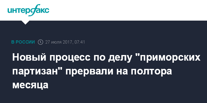 Москва. 27 июля. INTERFAX.RU - Судья объявил перерыв в рассмотрении уголовного дела так называемых "приморских партизан", которое в третий раз рассматривается в краевом суде во Владивостоке.