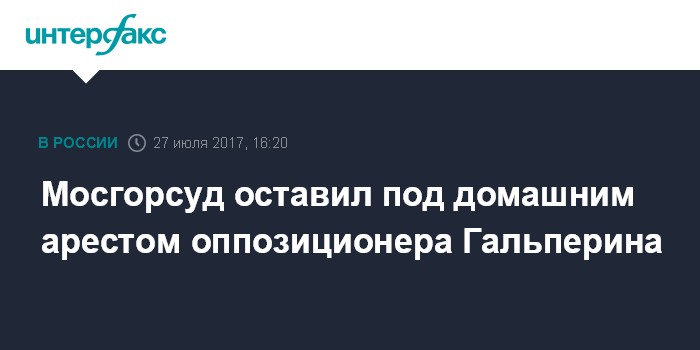 Москва. 27 июля. INTERFAX.RU - Мосгорсуд признал законным домашний арест оппозиционера Марка Гальперина, который обвиняется в призывах к экстремизму, сообщил "Интерфаксу" в четверг его адвокат Алексей Липцер.