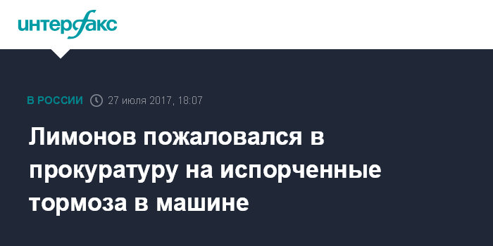 Лимонов пожаловался в прокуратуру на испорченные тормоза в машине