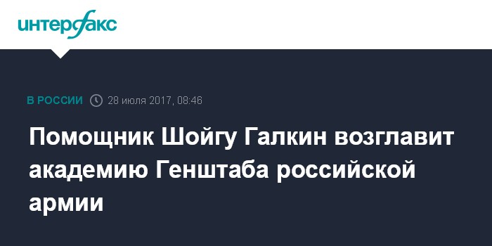 Помощник Шойгу Галкин возглавит академию Генштаба российской армии