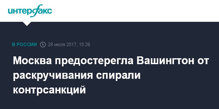 Москва. 28 июля. INTERFAX.RU - МИД РФ предостерег США от раскручивания санкционной спирали в связи с введением Москвой ответных мер на американский законопроект о санкциях.