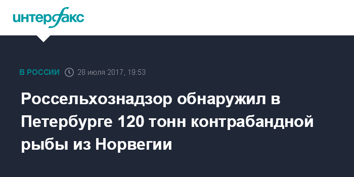 Москва. 28 июля. INTERFAX.RU - Россельхознадзор и Северо-Западная оперативная таможня обнаружили на одном из городских складов в Санкт-Петербурге около 120 тонн рыбы из Норвегии.