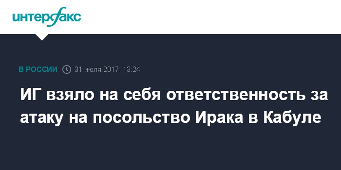 Москва. 31 июля. INTERFAX.RU - Террористическая группировка "Исламское государство" (запрещена в России) взяла на себя ответственность за атаку на посольство Ирака в столице Афганистана, сообщило в понедельник агентство АР.