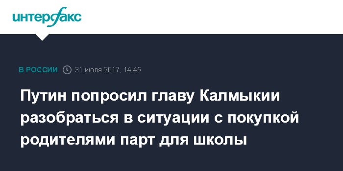 Так глава региона отреагировал на слова Путина, обратившего его внимание на случай, когда от родителей ученика в Калмыкии требуют купить парту для ребенка.