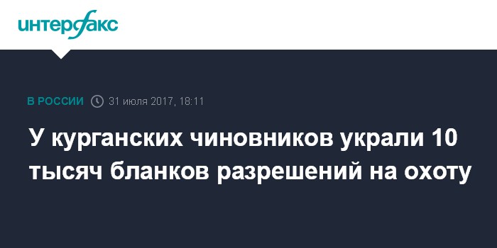 Согласно сообщению, курганская межрайонная природоохранная прокуратура в ходе проверки деятельности департамента природных ресурсов и охраны окружающей среды Курганской области установила, что были похищены более 10 тыс. бланков разрешений на охоту.