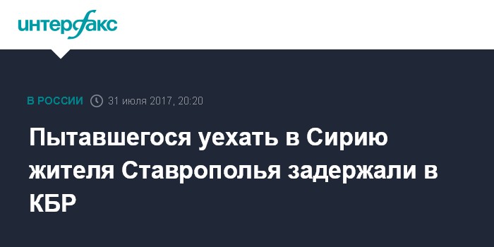 Москва. 31 июля. INTERFAX.RU - Молодой человек, пытавшийся добраться в Сирию, задержан в Нальчике, сообщили в пресс-службе погрануправления ФСБ РФ по КБР в понедельник.