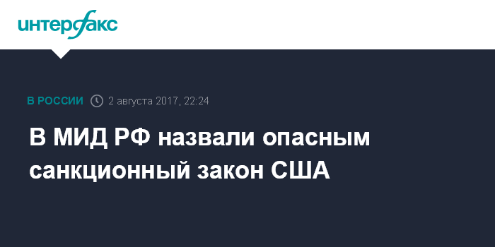 Москва. 2 августа. INTERFAX.RU - Введение в силу в США антироссийского закона - это недальновидная и опасная линия, заявляют в МИД РФ.