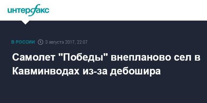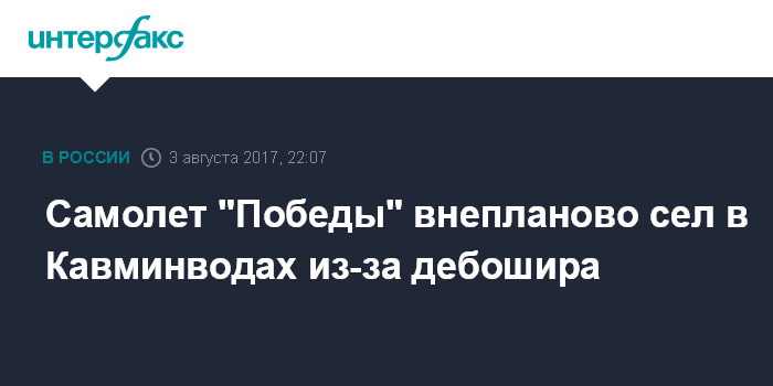 Москва. 3 августа. INTERFAX.RU - Самолет авиакомпании "Победа", летевший из Москвы в Махачкалу, сел в аэропорту Кавминвод из-за дебошира на борту, сообщили "Интерфаксу" в пресс-службе аэропорта Махачкалы.
