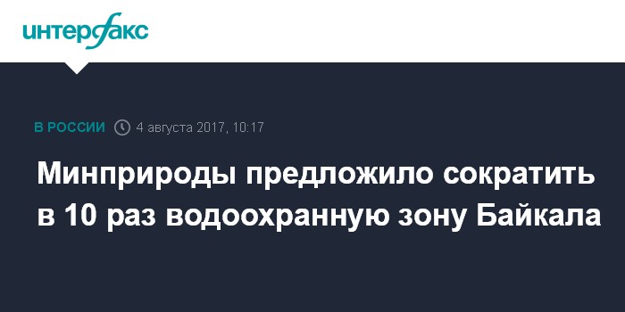Москва. 4 августа. INTERFAX.RU - Минприроды РФ подготовило предложения по сокращению водоохранной зоны озера Байкал, что позволит избежать излишних ограничений для хозяйственной деятельности, сообщил глава министерства Сергей Донской на совещании по вопросам экологического развития Байкальской природной территории.