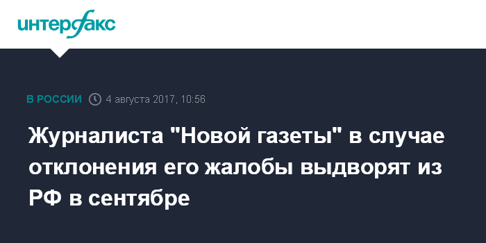 Журналиста "Новой газеты" в случае отклонения его жалобы выдворят из РФ в сентябре