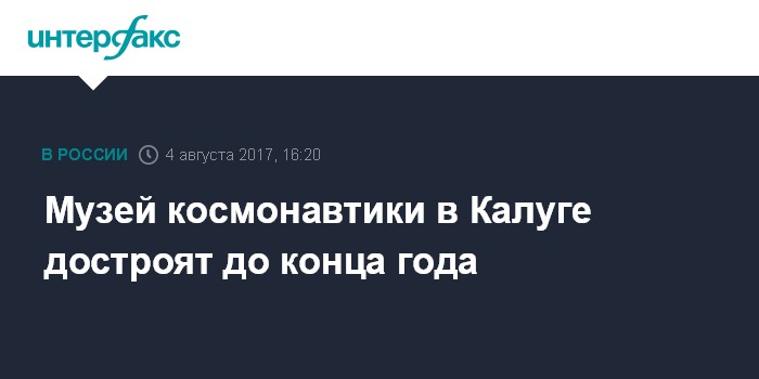 Москва. 4 августа. INTERFAX.RU - Строительство музея космонавтики имени Циолковского в Калуге завершат до конца года, сообщил журналистам министр культуры Владимир Мединский в пятницу.