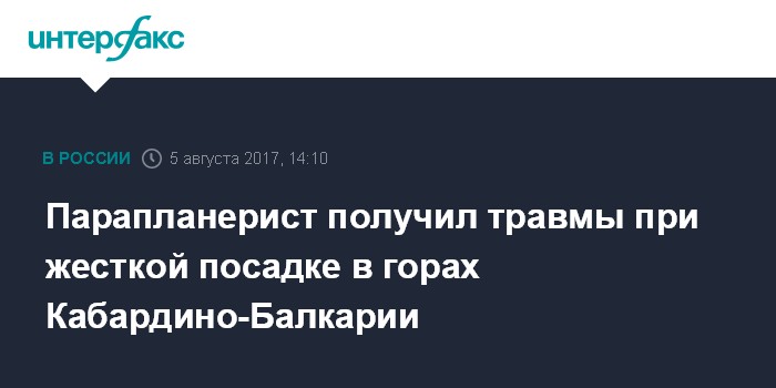 Москва. 5 августа. INTERFAX.RU - Парапланерист получил травмы при жесткой посадке в Чегемском ущелье в Кабардино-Балкарии, сообщает пресс-служба республиканского Главного управления МЧС России в субботу.