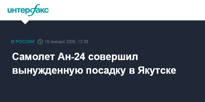 По словам собеседника агентства, в 10:10 по местному времени (04:10 мск) самолет благополучно произвел посадку в Якутске.