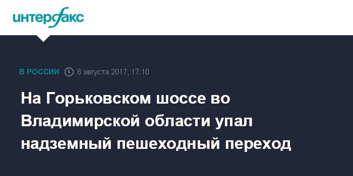 Москва. 6 августа. INTERFAX.RU - Два человека пострадали в результате падения надземного пешеходного перехода на трассе "Волга" во Владимирской области, сообщил "Интерфаксу" источник в экстренных службах.