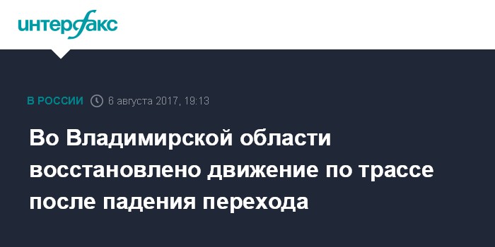 Во Владимирской области восстановлено движение по трассе после падения перехода