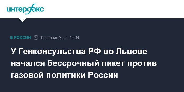 Львов. 16 января. INTERFAX.RU - Молодежные организации Львова устроили возле Генконсульства Российской Федерации во Львове бессрочный пикет против газовой политики России в отношении Украины и стран Европы.