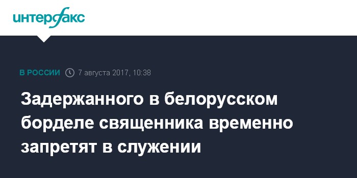 Москва. 7 августа. INTERFAX.RU - Священник Николай Киреев из Ленинградской области, задержанный в минувшие выходные в притоне в Белоруссии, на время следствия будет запрещен в служении.