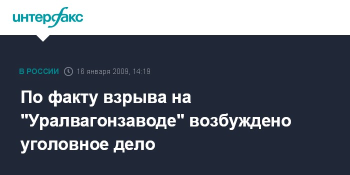 Екатеринбург. 16 января. INTERFAX.RU - Следственный отдел по Дзержинскому району Нижнего Тагила СУ СКП РФ Свердловской области возбудил уголовное дело по факту взрыва на "Уралвагонзаводе".