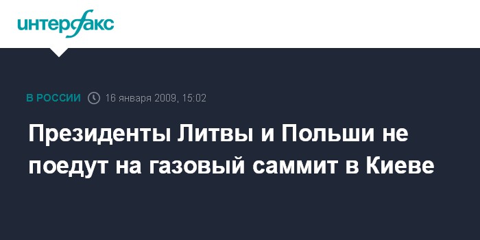 Вильнюс. 16 января. INTERFAX.RU - Президент Литвы Валдас Адамкус не примет участие во встрече в Киеве в пятницу, на которой будет обсуждаться российско-украинский газовый конфликт, сообщили агентству BNS советники президента.