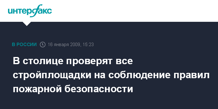 Москва. 16 января. INTERFAX.RU - В связи с пожаром, произошедшим в минувший вторник в подземном гараже жилого дома, в ближайшие три дня все строительные площадки в городе будут проверены на предмет проживания рабочих, а также на соблюдение правил пожарной безопасности, сообщили "Интерфаксу" в пресс-службе Мосгосстройнадзора в пятницу.