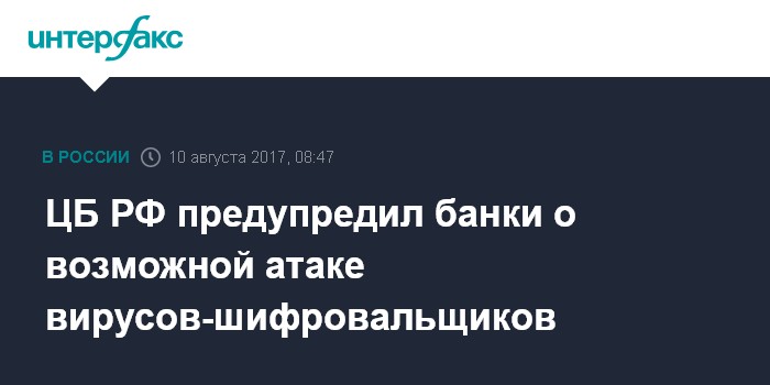 ЦБ РФ предупредил банки о возможной атаке вирусов-шифровальщиков