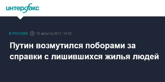 Путин возмутился поборами за справки с лишившихся жилья людей