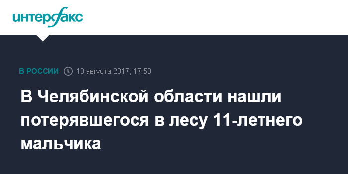 Москва. 10 августа. INTERFAX.RU - Сотрудники полиции нашли 11-летнего мальчика, потерявшегося в лесу в районе хребта Уреньга под Златоустом (Челябинская область), куда он в среду отправился собирать грибы. Об этом сообщила "Интерфаксу" официальный представитель МВД России Ирина Волк.