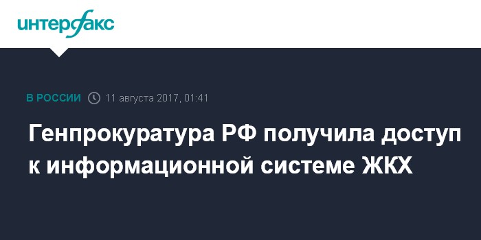 Генпрокуратура РФ получила доступ к информационной системе ЖКХ