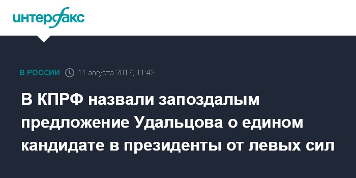 Москва. 11 августа. INTERFAX.RU - Предложение Сергея Удальцова провести праймериз и выставить единого кандидата от левых сил на выборы президента опоздало, хотя в целом в КПРФ оппозиционера всегда готовы поддерживать, заявил секретарь ЦК КПРФ Сергей Обухов.